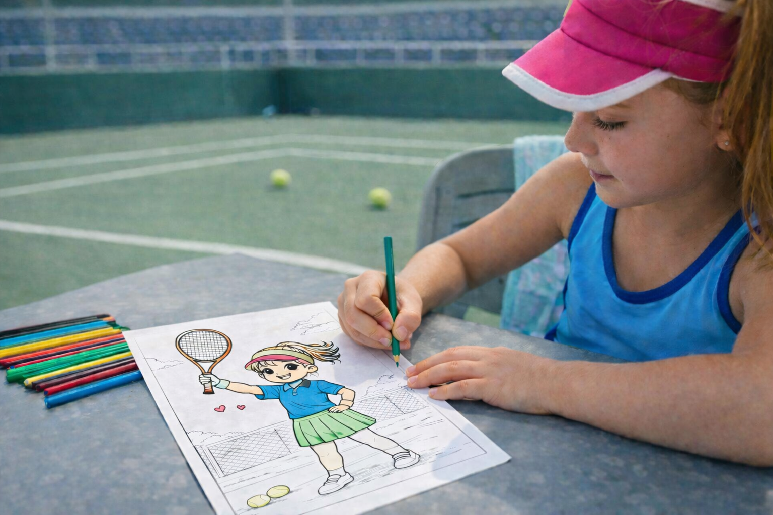 The Tennis Fun Book is a printable coloring experience that builds confidence, focus, and a love for tennis — one page at a time.